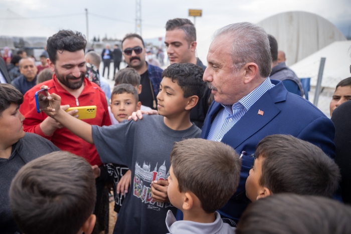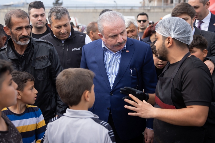 TBMM Başkanı Prof. Dr. Mustafa Şentop, Kahramanmaraş merkezli depremlerden en fazla etkilenen illerden Hatay'da çadır kentte yaşayan afetzedelere ziyarette bulundu.