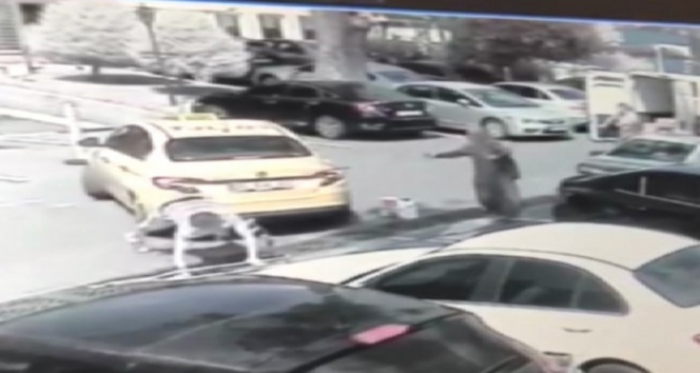 Güvenlik kameralarına yansıyan görüntülerde, taksiyle gelen genç vatandaşın yardımıyla araçtan inmeye çalışıyor. Bir süre sonra koltuk değneklerine tutunarak araçtan inen genç birkaç adım atıyor. Hastaneden çıkan bir kadın ise taksiciyle konuşarak araca biniyor. Kadının kapısını kapatmasının ardından taksici harekete geçiyor. Geri manevra yapan taksici, koltuk değnekli gence çarpıyor. Taksinin çarptığı genç sert bir şekilde yere düşüyor. Gencin düştüğünü gören bir vatandaş yanına giderken, bir başka vatandaş ise taksiyi durduruyor.