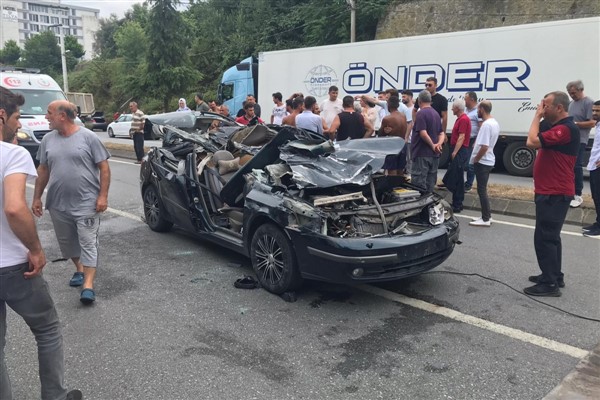 Kaza, Akçaabat ilçesinin Darıca mahallesinde meydana geldi. Edinilen bilgiye göre, Trabzon'dan Giresun istikametine gitmekte olan B.K. yönetimindeki 06 AY 0235 plakalı otomobil aynı istikamette ilerleyen A.E. yönetimindeki 48 LJ 929 plakalı tıra arkadan çarptı. Çarpmanın etkisiyle otomobilin tavanı kağıt gibi yırtılırken, kazayı gören çevredeki vatandaşlar durumu 112 Acil Çağrı Merkezine bildirdi. İhbar üzerine kaza yerine sağlık, polis ve itfaiye ekipleri sevk edilirken, aracın içerisinde sıkışan yaralılar için itfaiye ekiplerince çalışma başlatıldı. Sıkıştıkları yerden itfaiye ekiplerinin kısa süredeki müdahalesi ile kurtulan yaralılar sağlık ekipleri tarafından yapılan ilk müdahalenin ardından Karadeniz Teknik Üniversitesi (KTÜ) Farabi Hastanesi'ne sevk edildi.