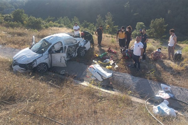 Manisa'nın Soma ilçesinde sürücüsünün direksiyon hakimiyetini kaybettiği otomobil şarampole yuvarlandı. Kazada aynı aileden 3'ü ağır 5 kişi yaralandı.