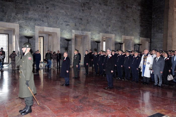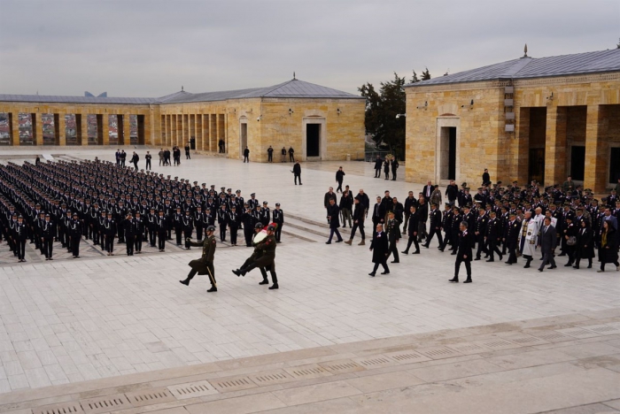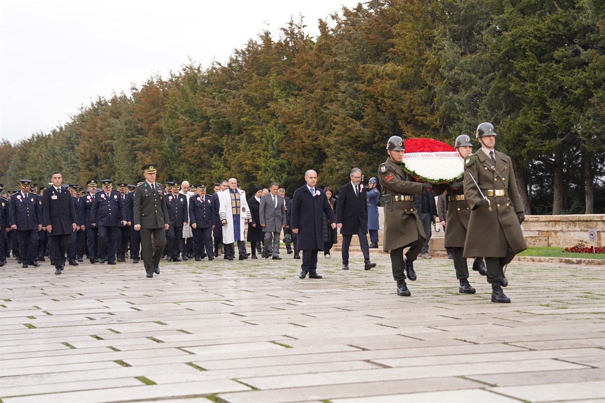 Heyetin Aslanlı Yolda yürüyüşüyle başlayan tören, Emniyet Genel Müdürü Mehmet Aktaş’ın mozoleye çelenk koyması ve saygı duruşuyla devam etti. Ardından beraberindeki heyet ile birlikte hatıra fotoğrafı çektiren Aktaş, Misak-ı Milli Kulesi’ne geçerek Anıtkabir Özel Defterini imzaladı.