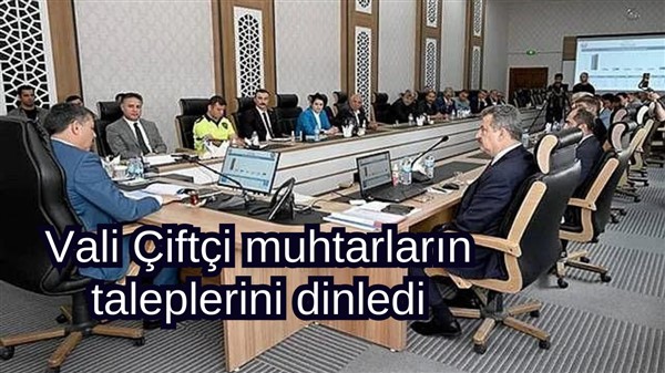 İl Emniyet Müdürü Kadir Yırtar ve kurum müdürlerinin katıldığı toplantıda Vali Çiftçi, mahalle sakinlerinden muhtarlara gelen talepleri not ederek vatandaşın huzuru ve güvenliği için gerçekleştirilecek uygulamalar hakkında gerekli mercilere talimatlarda bulundu.