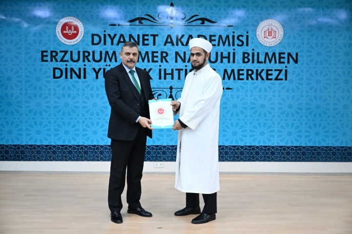 Erzurum Valisi Mustafa Çiftçi, Diyanet Akademisi bünyesinde düzenlenen 3. Dönem Mesleki Eğitim Programı’nı başarıyla tamamlayan din görevlileri için gerçekleştirilen mezuniyet törenine katıldı.