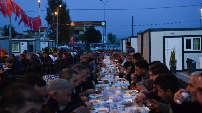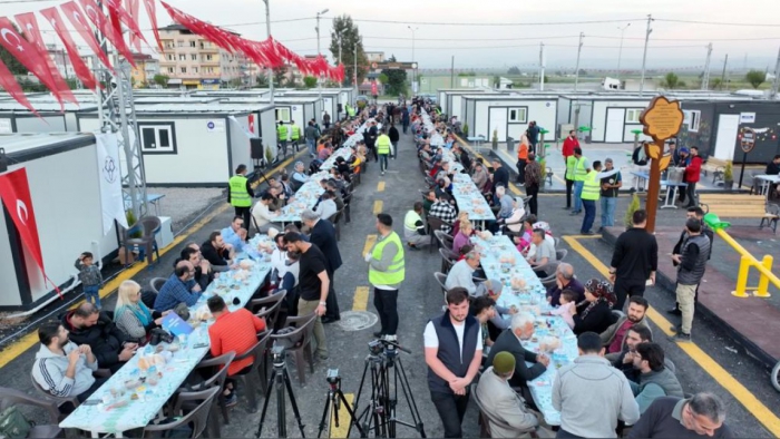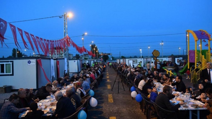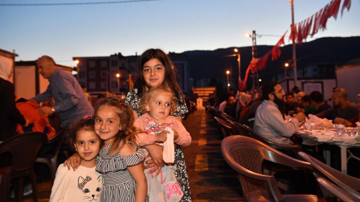 Yakutiye Belediyesi Hatay’da yapımını tamamladığı Yakutiye Konteyner Mahallesinde depremzedelerle birlikte iftar sofrasında bir araya geldi.
