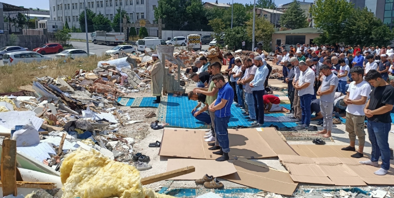 Esenyurt Osmangazi Mahallesi'nde geçtiğimiz hafta 12 yıllık Akın Mescidi, arsa sahibi tarafından izinsiz olduğu gerekçesiyle yıktırılmıştı. Yıkım sonrası çevrede iş yerlerinde çalışan ve namazlarını kılmak işin mescide gelen vatandaşlar büyük şaşkınlık yaşadı. Camide geçtiğimiz hafta molozların arasında Cuma namazını kılanlar bu haftada yine ibadetlerini moloz yığınları arasında gerçekleştirmek zorunda kaldı. Öğle sıcağında güneş altında ibadet eden vatandaşların güneşten korunmak için kartonları başlarına tuttuğu da görüldü. Molozlar arasındaki ibadet dron ile havadan da görüntülendi.